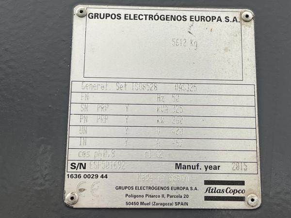 Generatorvermogen: 325 kVA