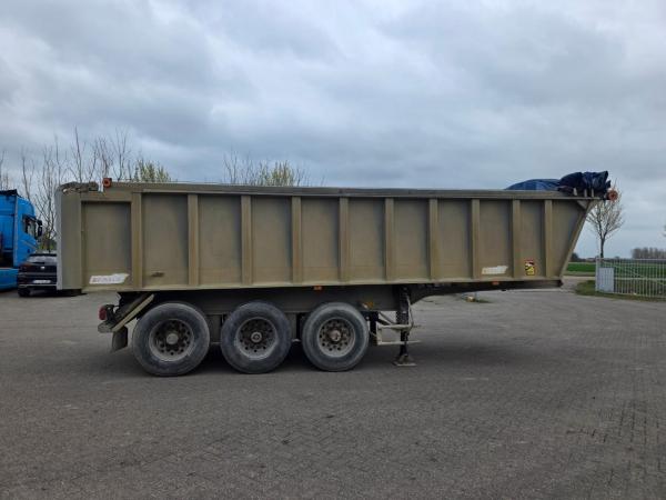 Benalu kipper oplegger, uitgevoerd met 3 assen, trommelremmen en luchtvering.