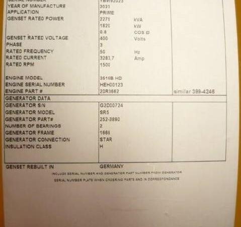 | Specialities | 3516B HD - 2.500 kVA Generator - DPX-18107 |