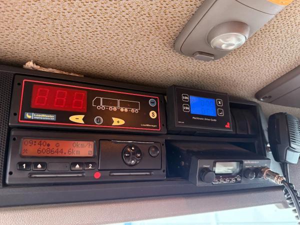 Achteras 1: Bandenmaat: 315/80R22.5; Dubbellucht; Differentieelslot; Max. aslast: 11500 kg; Bandenprofiel linksbinnen: 40%; Bandenprofiel linksbuiten: 40%; Bandenprofiel rechtsbinnen: 40%; Bandenprofiel rechtsbuiten: 40%; Reductie: enkelvoudige reductie; Vering: luchtvering