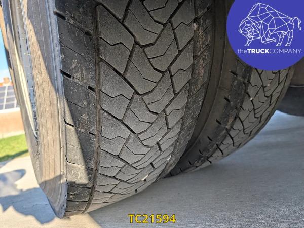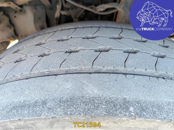 Achteras: Bandenmaat: 315/80 R22.5; Dubbellucht; Bandenprofiel linksbinnen: 15 mm; Bandenprofiel linksbuiten: 14 mm; Bandenprofiel rechtsbinnen: 15 mm; Bandenprofiel rechtsbuiten: 13 mm; Vering: luchtvering