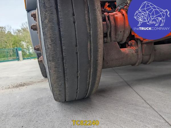 Achteras 2: Bandenmaat: 315/70 R22.5; Dubbellucht; Bandenprofiel linksbinnen: 11 mm; Bandenprofiel linksbuiten: 9 mm; Bandenprofiel rechtsbinnen: 8 mm; Bandenprofiel rechtsbuiten: 6 mm; Vering: luchtvering