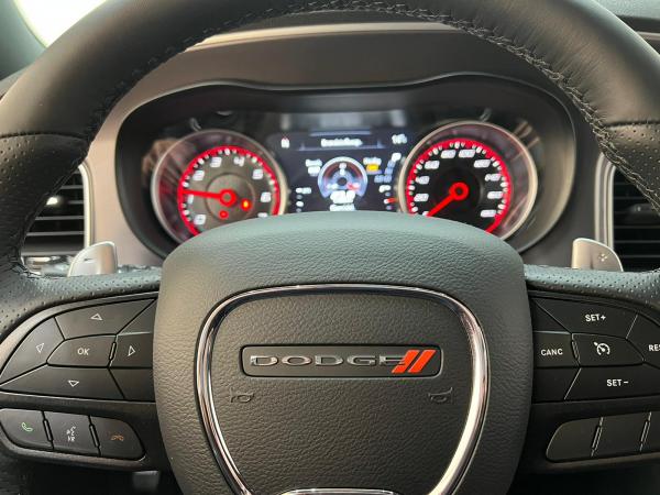 ZGAN 2022 Dodge Charger SRT 392 Widebody is een waanzinnige muscle sedan met bijna 500pk. Prijs is inclusief Nederlands kenteken. Het betreft hier een Europese uitvoering met kilometerteller, alle EU talen, navigatie volledig Europa en fabrieksgarantie. Uw nieuwe auto staat klaar voor vertrek. Stap gerust in, deze Dodge Charger heeft maar 3000 kilometer gelopen. Een achtcilinder benzinemotor en een automatische transmissie zorgen voor de uitstekende prestaties van deze auto. Om het af te maken is deze auto voorzien van een lederen interieur. Een weldaad voor u en uw bijrijder: deze Dodge Charger heeft verwarmbare voorstoelen. De comfortstoelen zorgen voor precies de juiste zit, hoe lang de rit ook is. Een heerlijk luxe optie van deze auto is het verwarmbare stuurwiel. Met de krachtige xenonverlichting rijdt u ontspannen in het donker. In deze Dodge profiteert u onder andere ook van: sportuitlaat, getint glas, zwarte hemelbekleding, LED-achterlichten, elektrisch bedienbare en verwarmde buitenspiegels en LED-dagrijverlichting. Alle audiofuncties zitten onder uw vingertoppen door de audiobediening op het stuur. Het navigatiesysteem geeft duidelijke instructies. Zo komt u veilig en vlot aan waar u moet zijn. De automatische airconditioning zorgt voor een prettige binnentemperatuur. Strak inparkeren wordt een fluitje van een cent door de achteruitrijcamera. Deze Dodge Charger maakt het rijden graag gemakkelijk. Daarom verzorgt de regensensor de mate van ruitreiniging die de ruitenwissers moeten leveren bij neerslag. Autosleutels overbodig. Deze Dodge Charger is voorzien van keyless start. Voor de lange ritten is de cruise control een verademing.