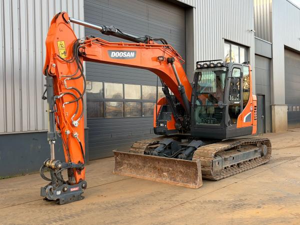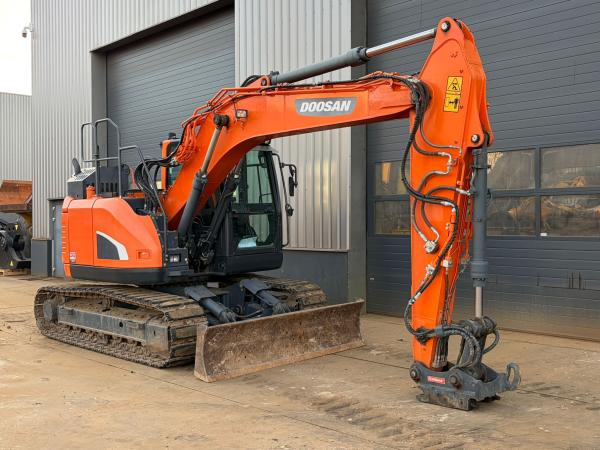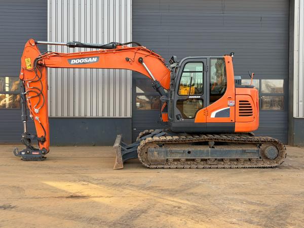 This Doosan DX140LCR-5 crawler excavator is available for sale at BIG Machinery in the Netherlands. Built in 2017, the machine is CE certified and EPA marked, complying with Stage 5 emission standards.