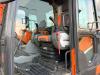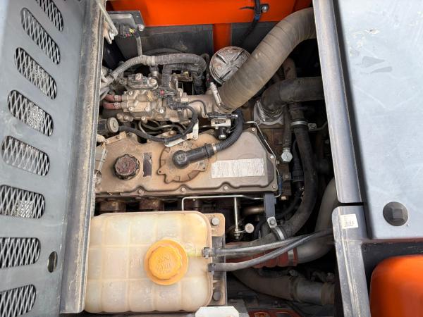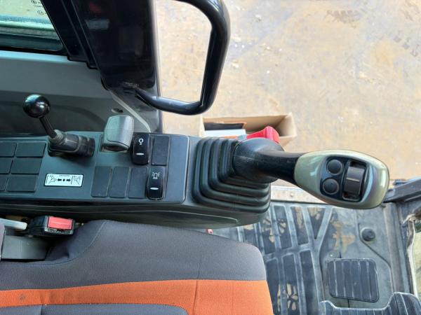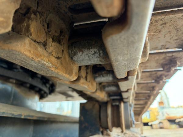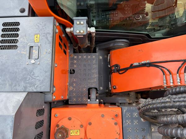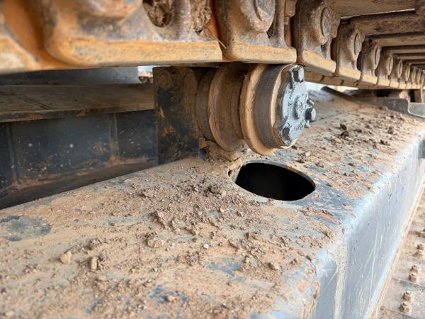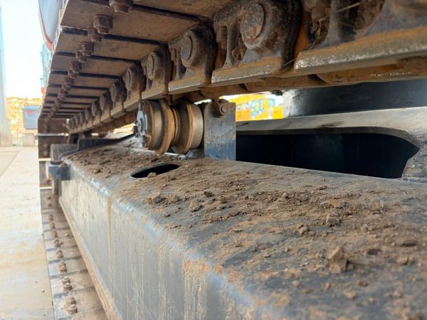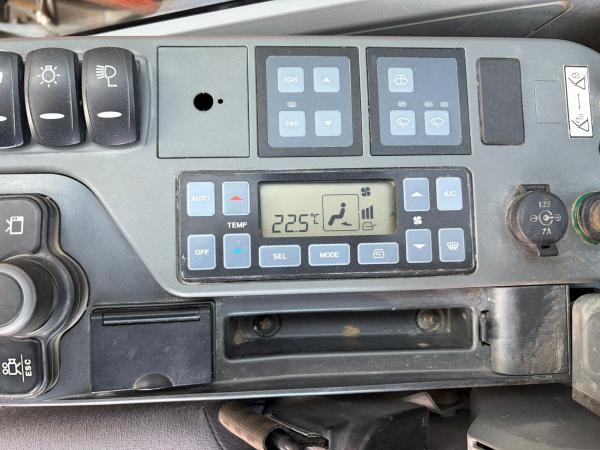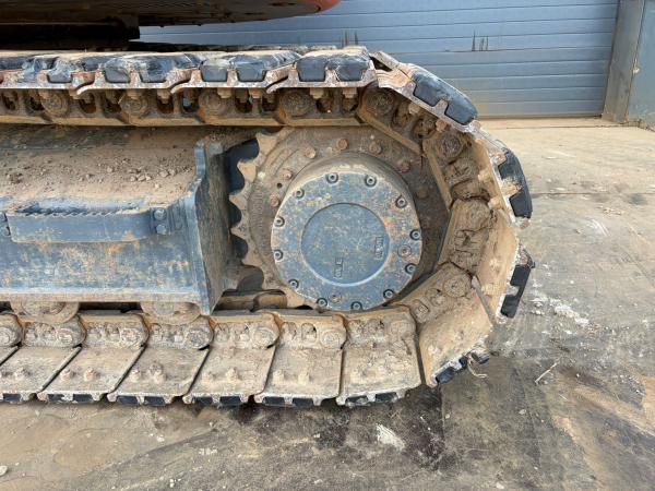 The tracks are approximately 80% and fitted with rubber pads, allowing operation on sensitive surfaces while maintaining strong traction. For operator comfort and safety, the machine also features air conditioning, a rear-view camera, and an AdBlue system.