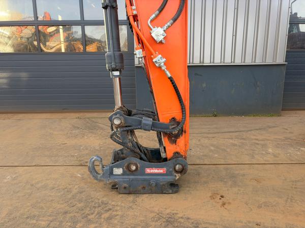 With 4,379 operating hours, this excavator is in good working condition and well suited for construction and earthmoving applications. The machine is equipped with hammer lines, a front blade, and an OilQuick OQ65 quick coupler for fast and efficient attachment changes.
