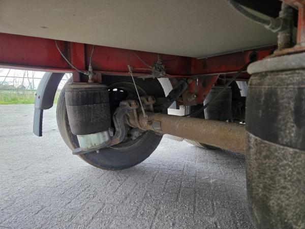Fruehauf zeilentrailer uit 2008, uitgevoerd met luchtvering en schijfremmen.
