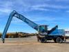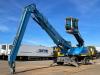 The machine is equipped with a long reach configuration, making it ideal for scrap handling, recycling, port operations, and bulk material applications. The air-conditioned cabin ensures operator comfort during long working shifts.