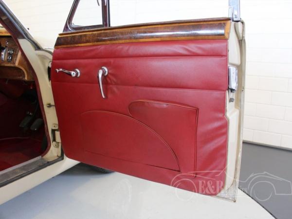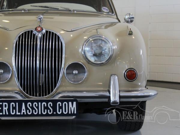 This Jaguar MK2 240 was new delivered on the 6th of june 1968 in Manchester. The Mark 2 has the original colour combination of beige paint with chrome wire wheels and a fabulous red leather interior with the wooden dashboard. The car has the original matching numbers 2483CC engine with the very popular overdrive option. The car has disc brakes all around. This very original Jaguar comes with a lot of documentation since 1969 and is in very good condition.
