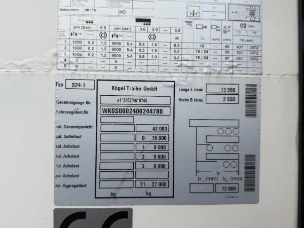 KÖGEL (2020) Kögel S24-1 / 3 AXLE / BPW / DISC BRAKES + SLIDING ROOF