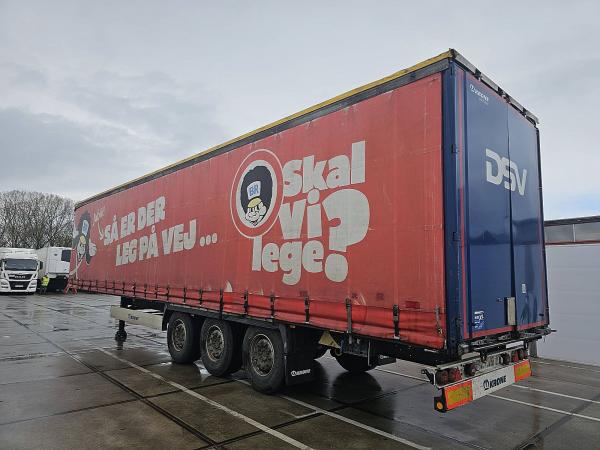 Aantal Assen: 3, Soort chassis: Volledig chassis, Materiaal chassis: staal, Kingpin afmeting: 2 inch, Vering type: vollucht, ABS (Anti Blokkeer Systeem), EBS, Bouwjaar opbouw: 2018, Materiaal opbouw: staal, Zijwand materiaal: zeil, TIR-lijn, Schuifdak, Merk as: KRONE