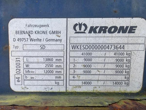 De Krone schuifzeil oplegger uit 2010, is uitgerust met BPW assen, trommelremmen en luchtvering.