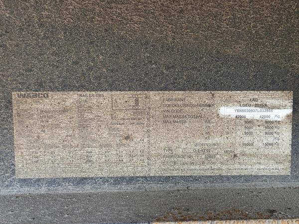 Achteras 3: Max. aslast: 9000 kg; Bandenprofiel links: 50%; Bandenprofiel rechts: 50%; Remmen: trommelremmen