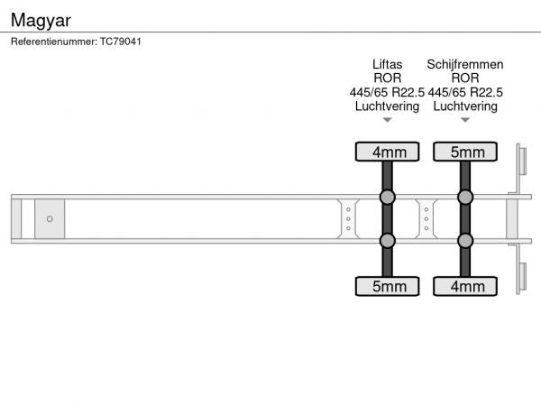Achteras 1: Liftas; Bandenprofiel links: 5 mm; Bandenprofiel rechts: 4 mm
