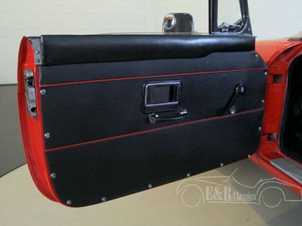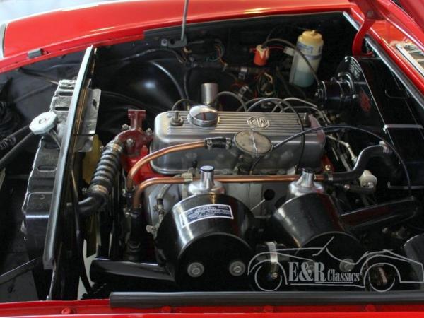 This MGB was delivered in 1968 in red paint with marvellous chrome and wire wheels. The 1798CC engine was fully checked and drives perfect. The dashboard has the original chrome clocks and the interior has black leather with red piping. This perfect driving MG is ready for a lot of pleasure rides.