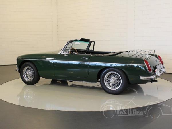 This is a 1964 MGB cabriolet with the beautiful classic steel dashboard. This MGB is in very beautiful condition. The car has paint in colour British Racing Green with black interior. This car also has chrome wire wheels, wooden steering wheel and a chrome luggage rack.