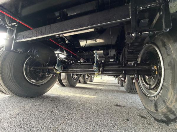 Construction & Chassis: The chassis is a heavy-duty I-type frame made of fully welded S355 steel with a UPE 240 outer frame for extra durability. The chassis is welded using an automatic ARC-submerged process, and the superstructure is welded with robot welding. The vehicle is equipped with 4 x 16-ton Özgül drum-brake axles, mechanical leaf spring suspension (12–14 leaves), a single-position EU-approved 2” kingpin (Çayırova Brand), 16+1 12 R 22.5 tires on 9.00 x 22.5 steel rims, and a mechanically operated two-speed landing gear (Gos Brand).