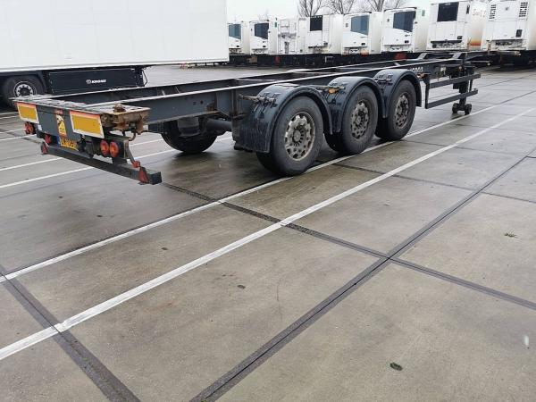 Aantal Assen: 3, Laadvermogen: 34600 kg, Eigen gewicht: 4400 kg, Totaalgewicht: 39000 kg, Soort chassis: Volledig chassis, Materiaal chassis: staal, Kingpin afmeting: 2 inch, Lichtmetalen velgen, Vering type: vollucht, ABS (Anti Blokkeer Systeem), EBS, Bouwjaar opbouw: 2008, Maten container: 1X 40 / 1X45 FT, Merk as: SAF