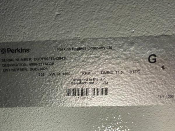 | Specialities | 4006-23TAG3A - 900 kVA Generator - DPX-19818 |