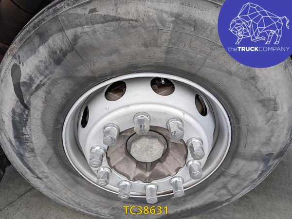 Achteras: Bandenmaat: 315/70 R22.5; Dubbellucht; Bandenprofiel linksbinnen: 7 mm; Bandenprofiel linksbuiten: 8 mm; Bandenprofiel rechtsbinnen: 8 mm; Bandenprofiel rechtsbuiten: 6 mm; Vering: luchtvering