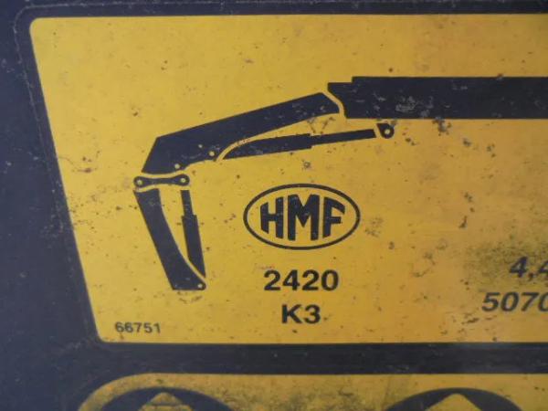 Kraan: HMF 2420K3, bouwjaar 2012, achter de cabine