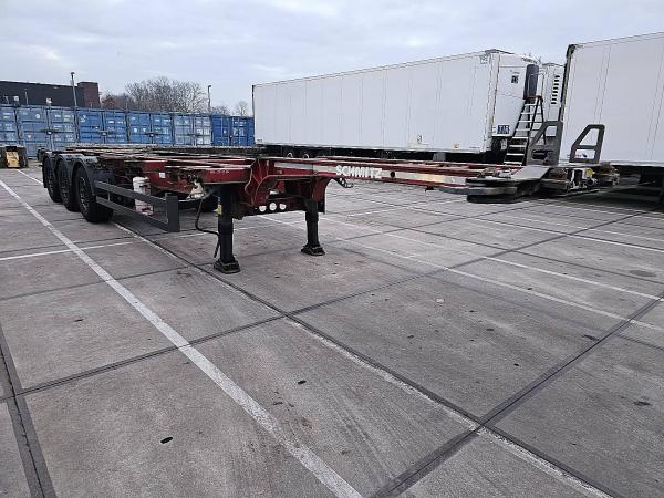Aantal Assen: 3, Eigen gewicht: 5600 kg, Totaalgewicht: 39000 kg, Soort chassis: Volledig chassis, Materiaal chassis: staal, Kingpin afmeting: 2 inch, Vering type: vollucht, ABS (Anti Blokkeer Systeem), EBS, Bouwjaar opbouw: 2012, Twistlocks: 2x20 + 1x30 + 1x40 + 1x45 high cube, Uitschuifbare chassis: Voorkant / achter, Merk as: SCHMITZ