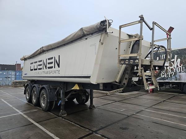 Aantal Assen: 3, Eigen gewicht: 5019 kg, Totaalgewicht: 39000 kg, Soort chassis: Volledig chassis, Materiaal chassis: staal, Kingpin afmeting: 2 inch, Vering type: vollucht, ABS (Anti Blokkeer Systeem), EBS, Bouwjaar opbouw: 2018, Materiaal opbouw: aluminium, Zijwand materiaal: aluminium, Aantal zijden: 1 zijdig kippend, Kipper aandrijving: PTO, Inhoud: 25, Maat bulkinhoud: m3, Merk as: SCHMITZ, PODEST // MANUAL COVER // 24 M3 ALU // LIFT AXLE // ROTOS DISC BRAKES