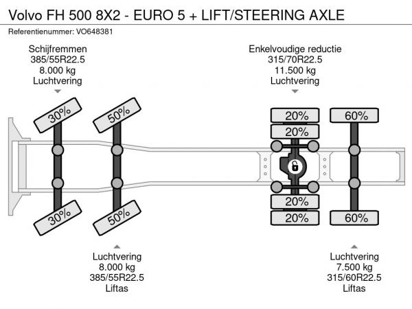 | Specialities | FH 500 8X2 - EURO 5 + LIFT/STEERING AXLE |