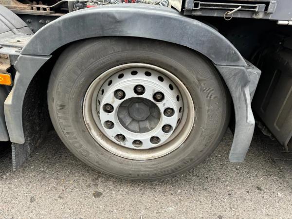 Achteras 1: Bandenmaat: 315/70R22.5; Dubbellucht; Differentieelslot; Max. aslast: 11500 kg; Bandenprofiel linksbinnen: 20%; Bandenprofiel linksbuiten: 20%; Bandenprofiel rechtsbinnen: 20%; Bandenprofiel rechtsbuiten: 20%; Reductie: enkelvoudige reductie
