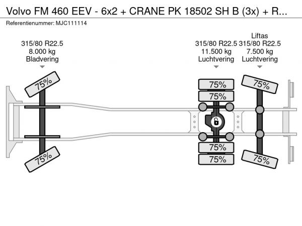 VOLVO (2014) Volvo FM 460 EEV - 6x2 + CRANE PK 18502 SH B (3x) + ROTATOR - LIFT + STEERING AXLE - RADIO - I-SHIFT - 6m65 PLATFORM - 13L ENGINE - GOOD CONDITION MJC111114