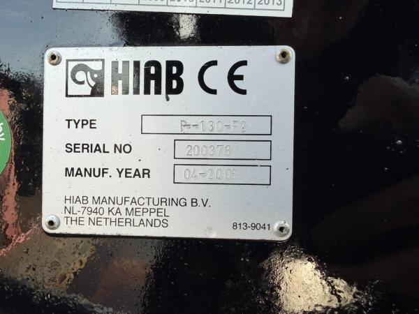 Crane: HIAB 130 R F-2, year of manufacture 2008, on rear of chassis