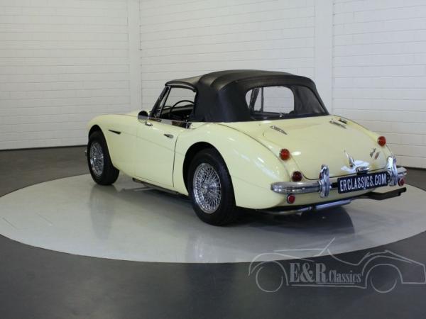 This 1967 Austin Healey 3000 MK3 is fully restored and is in very beautiful condition. The beautiful yellow body has chrome linings, beautiful Carello lights and chrome wire wheels. The wooden dashboard looks chic and has chrome clocks. The car has black leather seats. The Austin Healey produces 170 HP and has the popular overdrive, which makes driving this MK3 even more pleasant. The beautiful sporty sound is great for the fans. So, a fabulous Austin-Healey 3000 MK3
