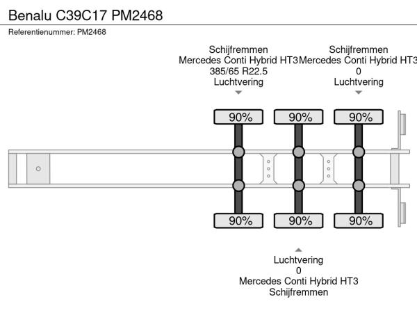 Achteras 1: Bandenmaat: 385/65 R22.5; Bandenprofiel links: 90%; Bandenprofiel rechts: 90%