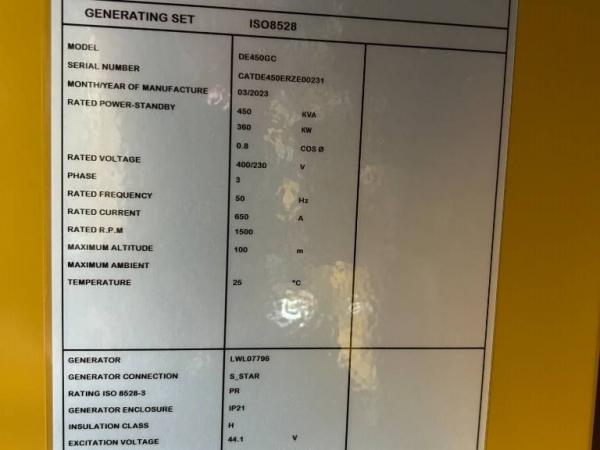 CAT (2025) CAT DE450GC - 450 kVA Stand-by Generator - DPX-18219