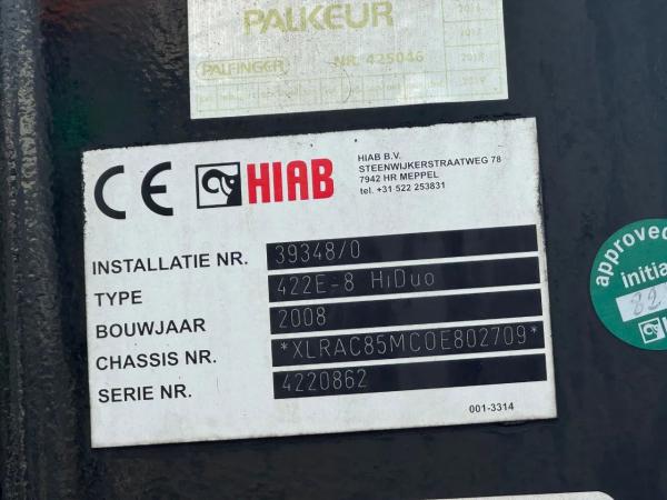 Kraan: HIAB 422 E8 HIDUO, bouwjaar 2007, achter de cabine