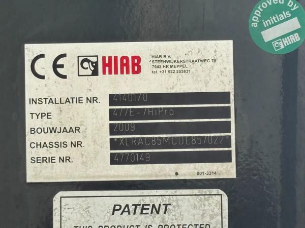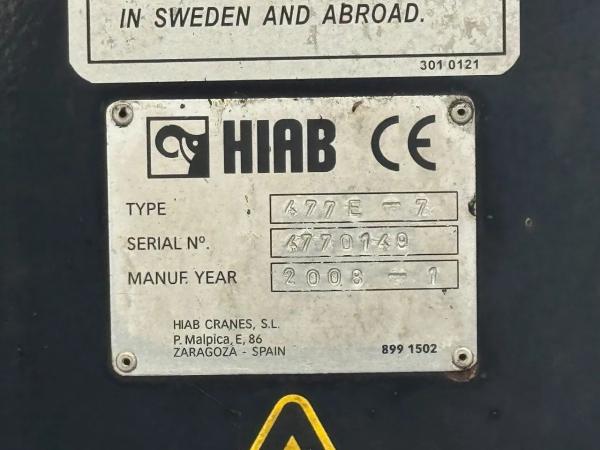 Kraan: HIAB 477E-7, bouwjaar 2008, achter de cabine