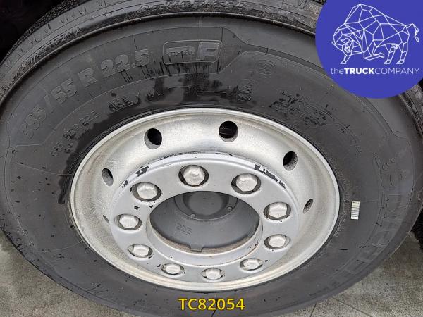Vooras: Bandenmaat: 385/55 R22.5; Meesturend; Bandenprofiel links: 10 mm; Bandenprofiel rechts: 11 mm; Vering: bladvering