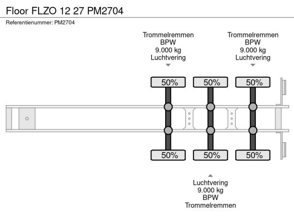 Achteras 2: Max. aslast: 9000 kg; Bandenprofiel links: 50%; Bandenprofiel rechts: 50%
