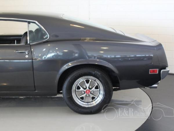 This Ford Mustang was built in 1970 in Metuchen New Yersey in the Sportsroof version, also known as ‘Fastback’. The fabulous lines look great in combination with the dark grey metallic paint and the fabulous chrome. The interior has black leatherette seats and a beautiful wooden steering wheel. It is a pleasure to drive thanks tot the V8 engine in combination with the automatic gearbox. Technics fully checked in our workshop and is in excellent condition. The car also has disc brakes at the front, Styled Steel wheels and powerbrakes. So a beautiful Mustang Fastback ready for lots of driving fun.