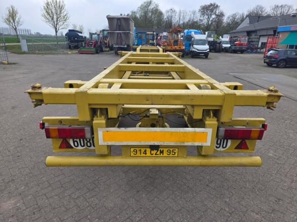 Deze oplegger is uitgevoerd met 3 assen van het merk Fruehauf, bladvering en trommelremmen, wat zorgt voor een eenvoudige onderhoudsvriendelijke techniek. Dankzij de twistlocks is het chassis geschikt voor het veilig vervoeren van containers.