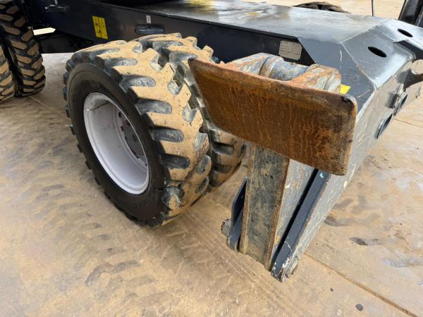 It comes equipped with grapple and outriggers, making it suitable for material handling and industrial applications.