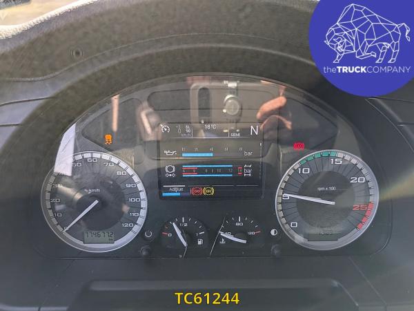 Achteras: Bandenmaat: 315/80 R22.5; Dubbellucht; Bandenprofiel linksbinnen: 7 mm; Bandenprofiel linksbuiten: 8 mm; Bandenprofiel rechtsbinnen: 8 mm; Bandenprofiel rechtsbuiten: 7 mm; Vering: luchtvering
