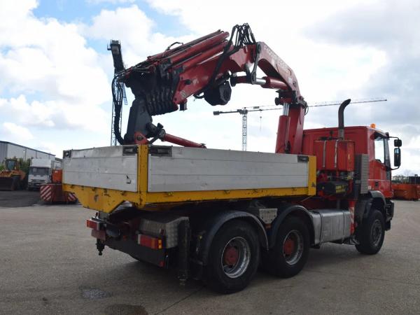 FASSI F600XP – Flygip – Winch – 4 steunpoten – Naafreductie – koppelschotel+ Laadbak +- 3 m – totaal 26.000 kg – Tarra 17355 kg – Wielbasis 3200 mm –