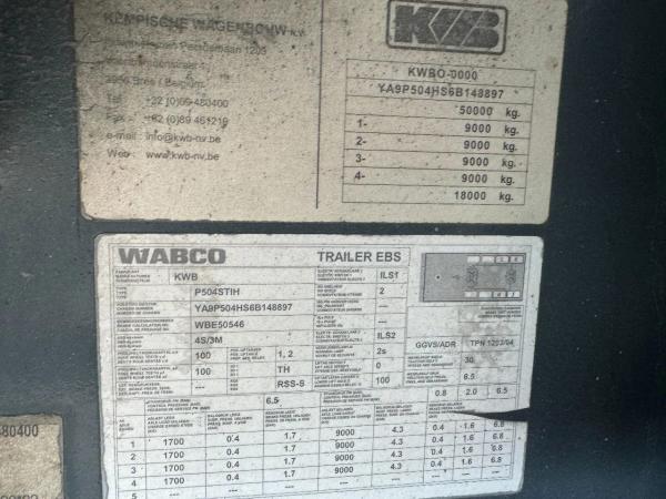Achteras 4: Max. aslast: 9000 kg; Meesturend; Bandenprofiel links: 40%; Bandenprofiel rechts: 50%