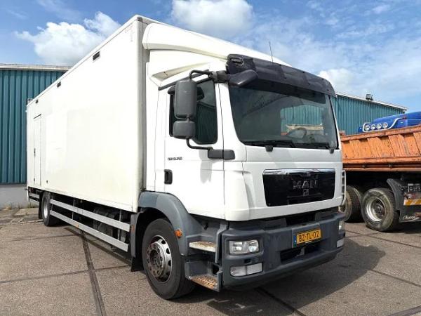 MAN (2012) MAN TGM 18.250 BL WITH PLYWOOD CLOSED BOX AND LOADING PLATFORM (EURO 5 / AS-TRONIC / AIRCONDITIONING / COMPLETE SPOILERSET / ENGINE PROBLEM!!)