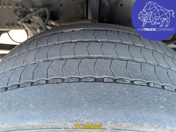 Achteras: Bandenmaat: 315/60 R22.5; Dubbellucht; Bandenprofiel linksbinnen: 7 mm; Bandenprofiel linksbuiten: 6 mm; Bandenprofiel rechtsbinnen: 7 mm; Bandenprofiel rechtsbuiten: 4 mm