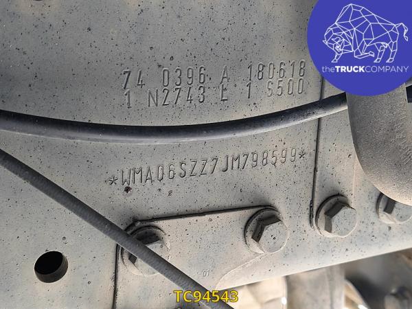 Vooras: Bandenmaat: 385/65 R22.5; Meesturend; Bandenprofiel links: 8 mm; Bandenprofiel rechts: 7 mm; Vering: bladvering