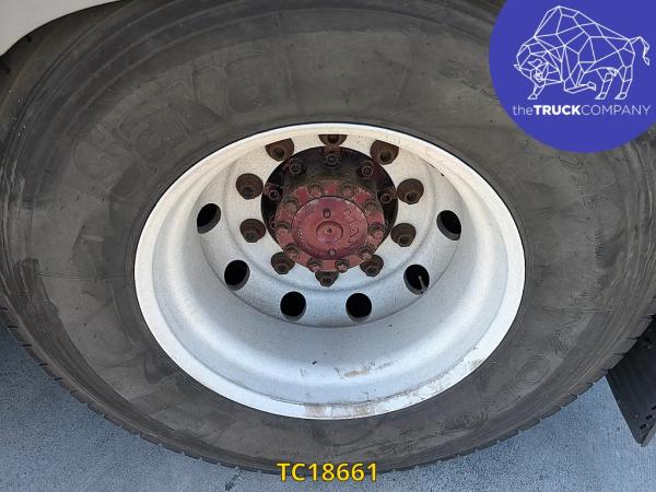 Achteras: Bandenmaat: 315/80 R22.5; Dubbellucht; Bandenprofiel linksbinnen: 15 mm; Bandenprofiel linksbuiten: 14 mm; Bandenprofiel rechtsbinnen: 15 mm; Bandenprofiel rechtsbuiten: 17 mm; Vering: luchtvering