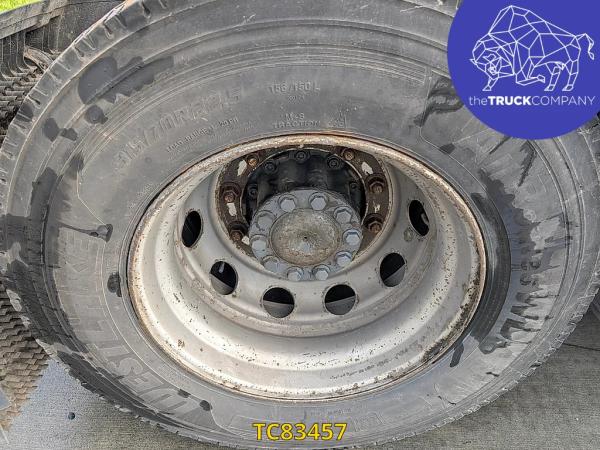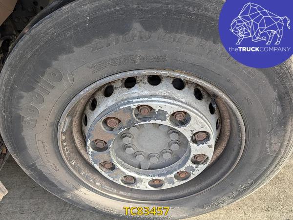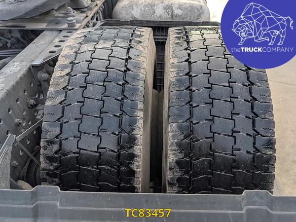 Achteras: Bandenmaat: 315/70 R22.5; Dubbellucht; Bandenprofiel linksbinnen: 11 mm; Bandenprofiel linksbuiten: 10 mm; Bandenprofiel rechtsbinnen: 10 mm; Bandenprofiel rechtsbuiten: 10 mm