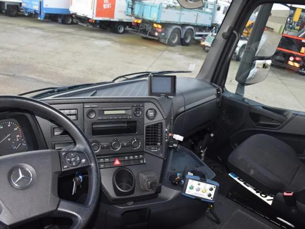 2dehands vrachtwagen Mercedes Arocs 1836 met platte bak – Slechts 32.000 km – inox Plateau +- 4.50 m – Sneeuwplaat – P.T.O aansluiting met Hydraulique ( motor of boite ) – Naafreductie – Airco – Camera – Bandenmaat 13R22.5 - total 19.000kg - tarra 8667 kg - tarra 3900 - wielbasis 3900 -